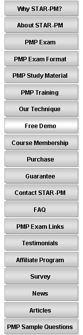 Request Demo We are very confident in the quality of our material. Our Free Demo includes the followings from our study guide r Table of Contents r Chapter 1—Foreword r Chapter 5—Project Management Concepts r Appendix 2—Exam Cheat Sheet & Workbook